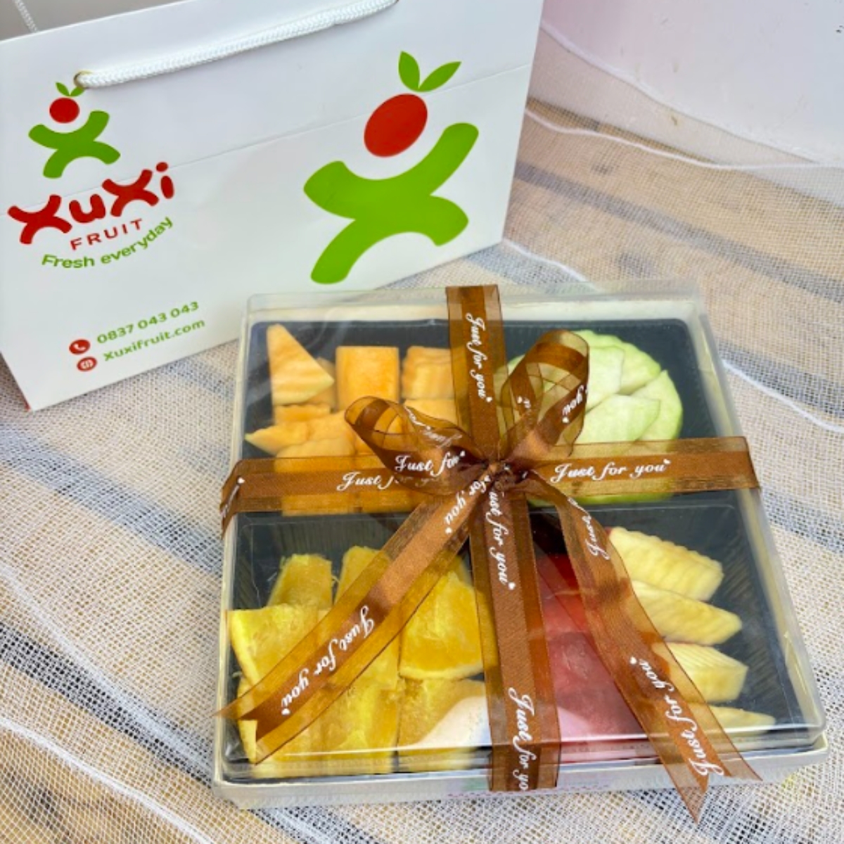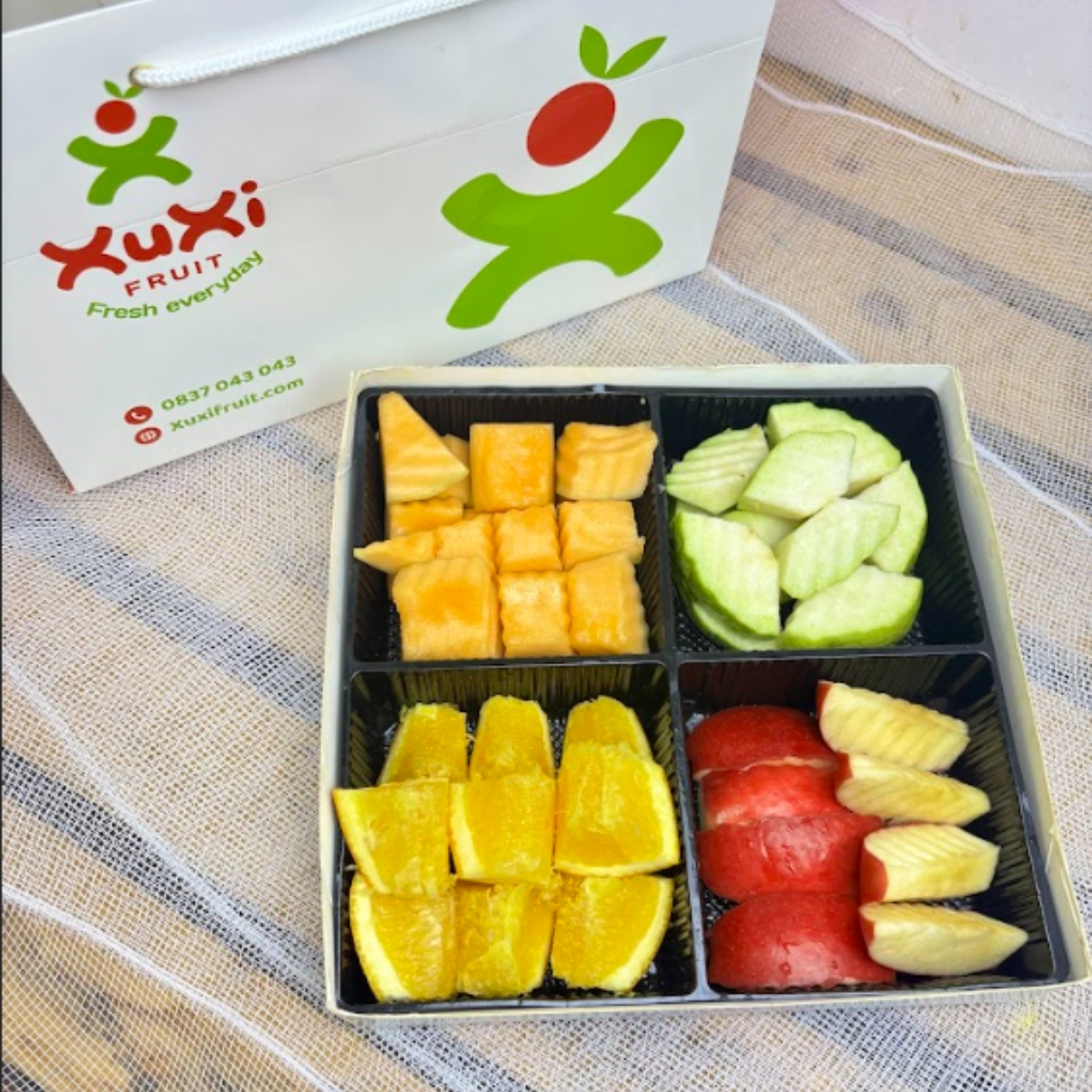 Hãy ghé thăm ngay XuXi Fruit hoặc liên hệ để đặt mua Box trái cây cắt sẵn 4 khay – XB4004 qua các kênh đặt hàng: