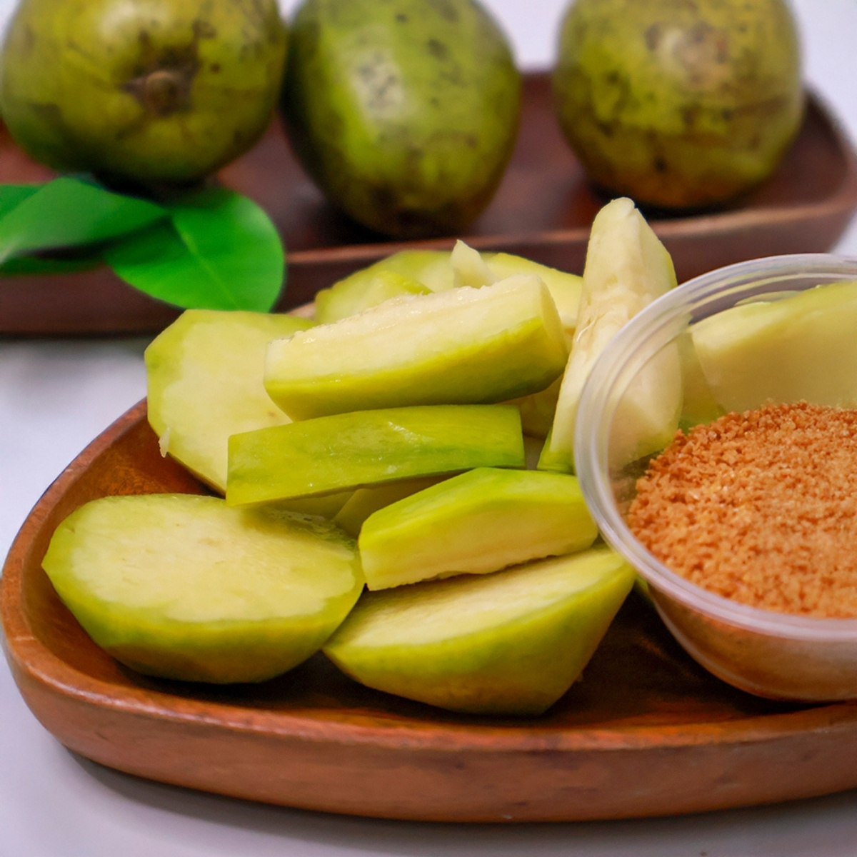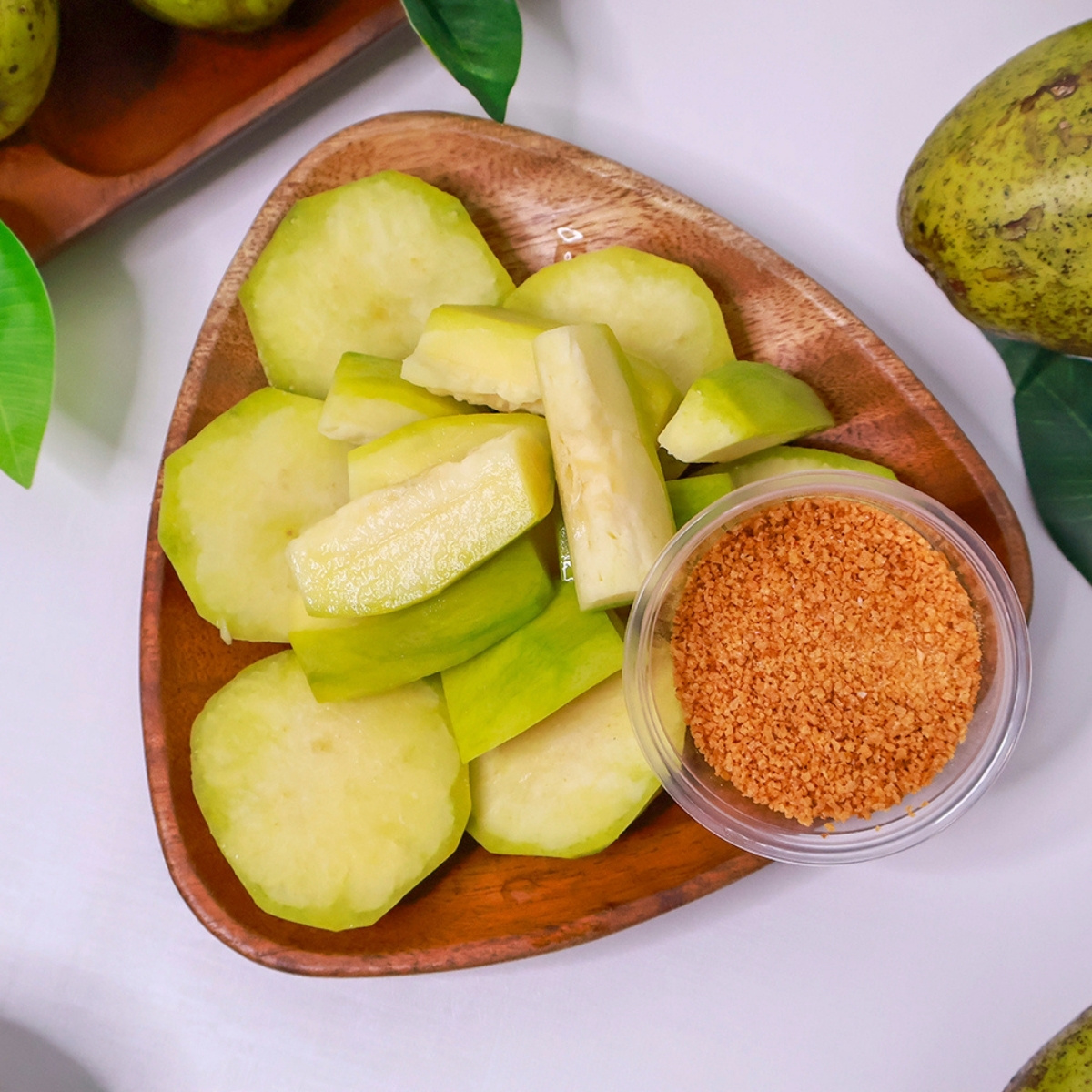 - Ăn trực tiếp chấm muối: Gọt vỏ, rửa sạch, sau đó chấm với muối ớt, muối tôm hoặc mắm đường sệt.